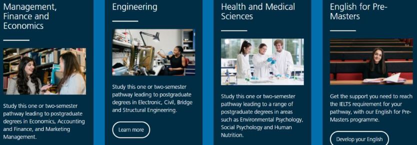 萨里大学的国际学习中心(ISC)开设有本科预科课程。方向有,商务、经济、法律和社会科学;工程和物理科学;生命科学。