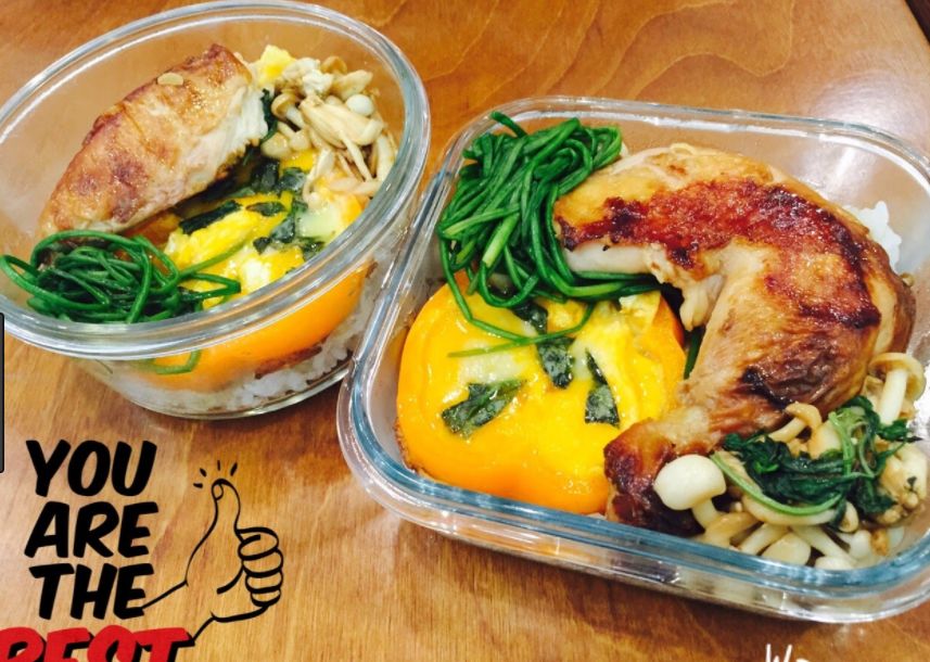 每一道我都是当成一个便当哦。例如像小黄瓜拌鸡,就把这道放在饭上带去公司,并没有再另外煮别的菜,因为太懒了。