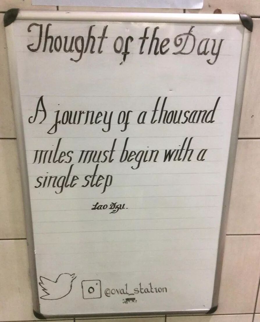 于是,他决定为地铁站每日行色匆匆的乘客们写一句鼓舞人心的智慧名言,并且一干就是14年。