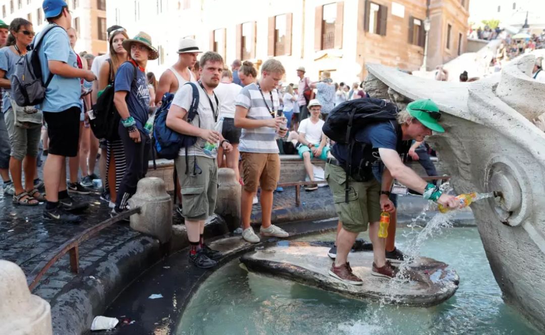 放眼欧洲,都处于热浪警报状态,有的地方都到48度的高温了。各地地区,最受欢迎的依然是喷泉,不过不是游客合影,而是接水。