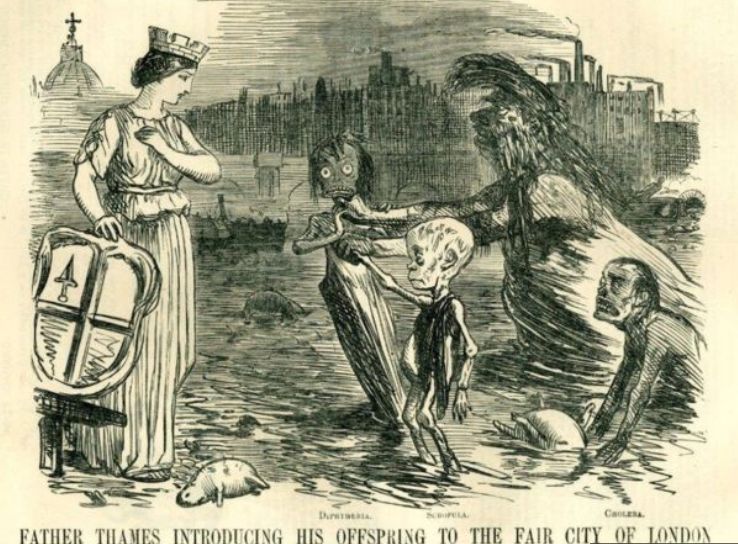 更糟糕的是,伦敦生活用水也来自泰晤士河。那个夏天,除了腹泻伤寒,霍乱也发生了,夺去数千人的生命。