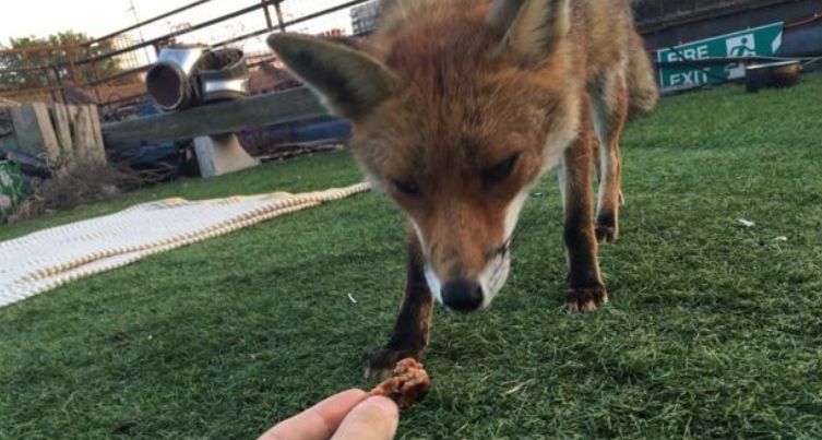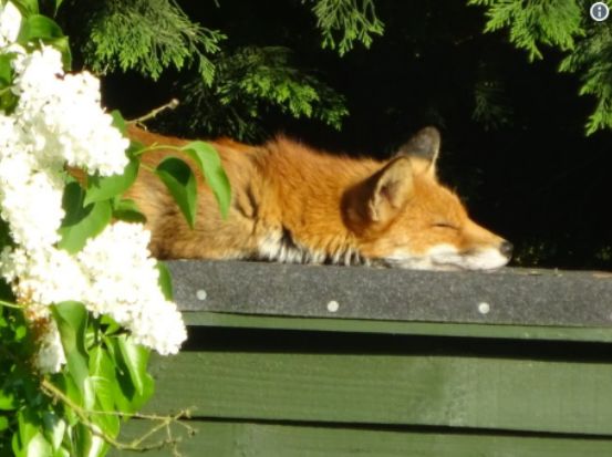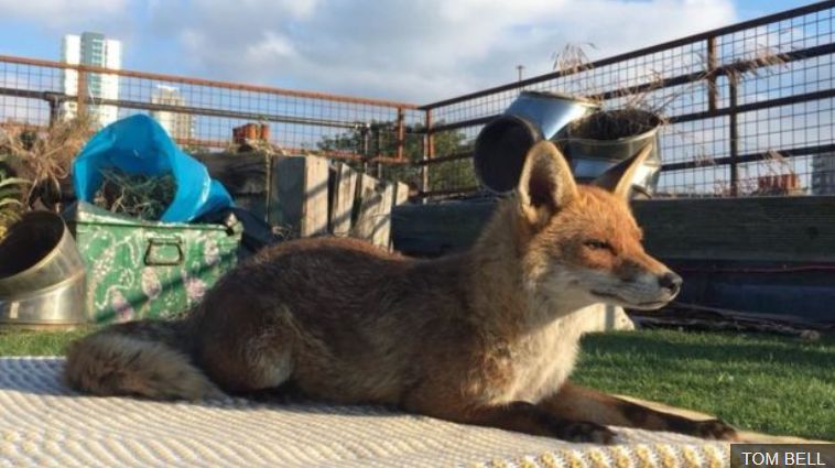 这只狐狸呢,被人们发现在伦敦Finsbury Park的一处屋顶上,悠闲的晒着日光浴。