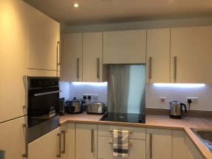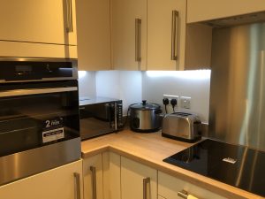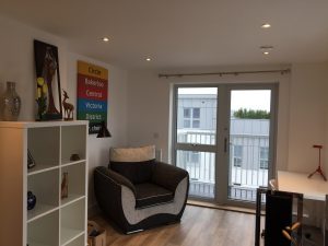 此公寓在2017年刚刚交付使用,所有设施齐全。公寓建设质量好,冬暖夏凉,有独立的卧室,独立的卫浴,独立的厨房和客厅,双开窗,透气通风。整个房间采光好,南北通透。属于高楼层,无噪音干扰,安静舒适。安全性非常好,双层门禁系统给予安全双层保障。房间家具齐全,包括(衣帽架,king size bed, 记忆性床垫,沙发,衣柜,书桌,电脑椅,高品质饭桌,镜子,吸尘器,西餐垫,装饰品,台灯 ,落地灯等)。距离学校后门非常近,走路5分钟。楼下去超市2分钟,去火车站2分钟。去镇中心5分钟。属于黄金商圈的正中心。
