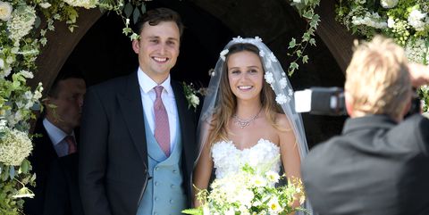而且新郎的哥哥还是剑桥公爵的好友,也是萌萌哒夏洛特公主的教父。27岁的新娘,穿着一件秀满花朵的头纱,贴身的礼服。别看新娘年轻,人家有一个视频公司哦。