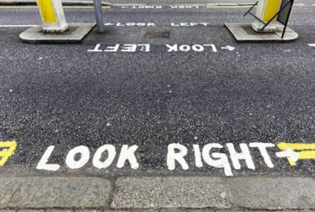 - 到达英国后,过马路向右看