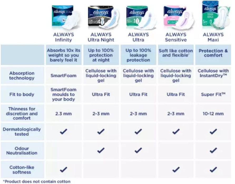Always是保洁旗下的牌子,小鹿建议大家先在某宝上看看中文,到了英国对照买总不会错。这个牌子在国内的卖点就是“液体卫生巾”,其实就是一种材质,类似于棉质感。