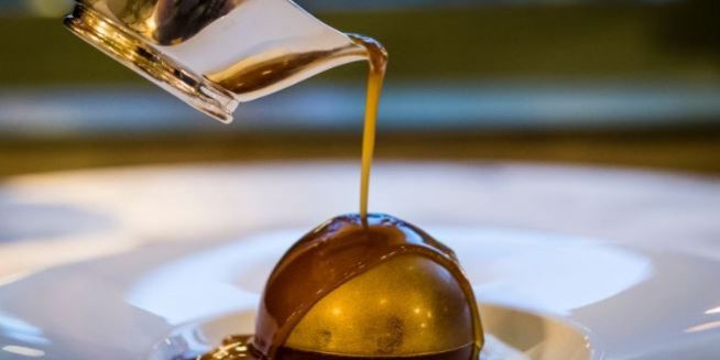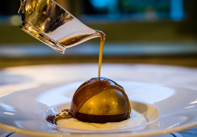 甜点也有很多选择,无面粉卡布奇诺蛋糕,阿拉斯加柠檬蛋奶酥,香草奶油布丁,巧克力“炸蛋”。